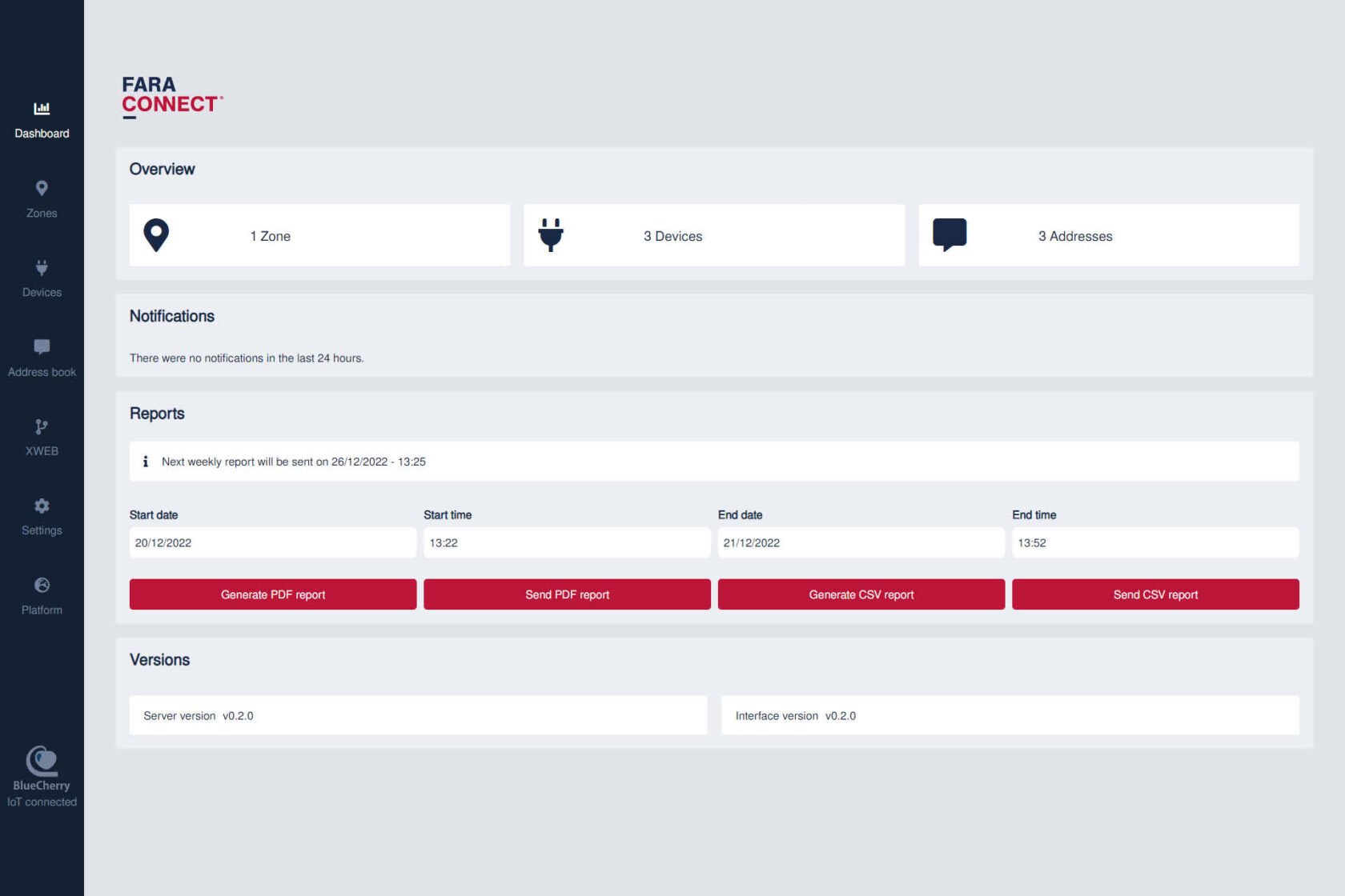 Het FaraConnect platform is een overzichtelijk ontworpen portaalsite waar men de gegevens van gekoppelde FaraConnect gateways kan raadplegen. Bovendien is het portaal ook beschikbaar als mobiele applicatie, downloadbaar via zowel de Apple App Store als Android’s Google Play.